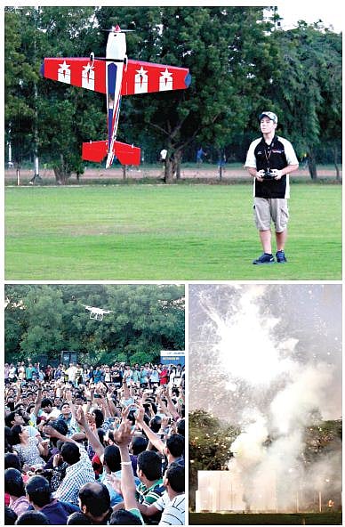 It started with a quadcopter, a four-armed spider-like rotor by Arul Sengan taking up the Shaastra banner into the skies. Soon, Jase Dussia, a 15-year-old from the US, had taken the crowd in his hands as his plane took off, rotating on its axis, nose-diving and going upside down its length, all in mid-air.