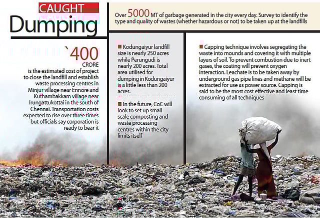CHENNAI: Residents around Kodungaiyur and Perungudi dumpyards, who have been eagerly looking forward to the closure of the sites, will have to bear with the stench and smoke from the garbage for at least two more years, as the Chennai Corporation is yet to make any headway in its efforts to cap the yards or developing alternate sites to process the waste. The civic body had proposed a Rs 400 crore plan to scientifically cap these two landfill sites that receive most of the 5000 metric tonne waste generated every day in Chennai. This was to be sent instead to sites at Minjur and Kuthambakkam villages to process it scientifically.