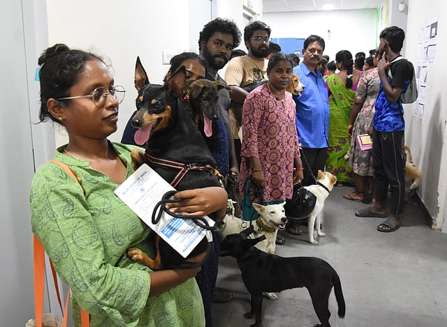 At 7.50 am on Friday, people’s patience outside the ABC centre in Pulianthope was as thin as the two-foot-wide sidewalk where they had been standing for over an hour. Pet parents held their dogs close, some lifted in their arms, others kept on short, tense leashes. The previous night’s showers had left the pavement damp, and every dog on the sidewalk carried a muddy imprint on its hind legs and back, picked up as they shifted about at the sight of onlookers and other pets.