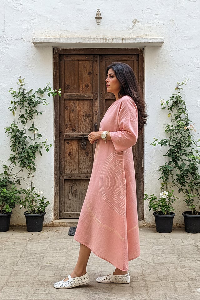 The collection is not just about aesthetics; it tells the story of craft, care, and collaboration. “We first got a small bit of the fabric and were pleasantly surprised. It was finer and lighter than we expected. That challenged our usual design approach, but it was exciting,” Kaveri shares. The lighter weight allowed for playful experimentation with silhouettes, creating pieces that are easy to wear, versatile, and suitable for everyday life. While the designs are contemporary, she emphasises that the collection uses natural fabrics and handwork, the focus is on preserving the integrity of the craft rather than labelling it, or any other collection, as “sustainable” for marketing purposes.