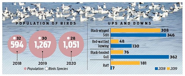 NEW DELHI: Delayed winter in 2019 has caused a late arrival of winter migratory waterbirds from far Central Asia, North Asia and parts of Siberia. Total number of birds that migrated to river Yamuna as well are far lesser in comparison to previous years. According to Asian Waterbird Census (AWC) 2020, in the river Yamuna (Wazirabad Barrage to Nizamuddin Bridge), a partial decrease in species diversity compared to previous years was also recorded. While in 2018, 32 species of birds were sighted, the number came down to 30 species in 2019, and only 28 species were spotted this time around in 2020.