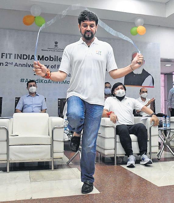 NEW DELHI: Sports Minister Anurag Thakur on Sunday launched the Fit India mobile app, a personal trainer-cum-fitness guide, on the occasion of the second anniversary of the Fit India Movement here.