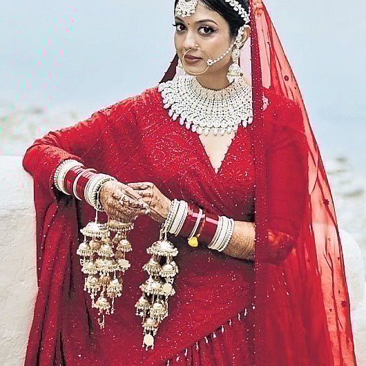 Gupta belongs to a business family of Lucknow. She has fond memories of shopping for chikankari kurtas with her mother. While starting a business was on her mind for a long time, she didn’t have that “inner calling” until her wedding day last December. She wore an ethereal custom-made red chikankari lehenga paired with a tulle dupatta that took eight months and hard work of six women artisans to be crafted. She did not know till the end how her final lehenga looked because it was undergoing various processes from sketching, to dyeing and ornamentation. “I was scared about how it would turn out. When it was revealed, it was worth the wait. I held it in my hands and realised that the beauty of handwork chikankari is unparalleled and is being lost in the mass-produced machine-made pieces. Plus, the artisans are being paid very meagre amounts and it’s not a sustainable livelihood for them. On my wedding day, I decided to give back to this community and spotlight the craft that I’ve grown up wearing,” she says.