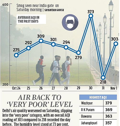 According to CPCB data, Delhi recorded an Air Quality Index (AQI) of 296 at 4 pm, placing it in the “poor” range. An AQI between 301 and 400 is considered “very poor.”