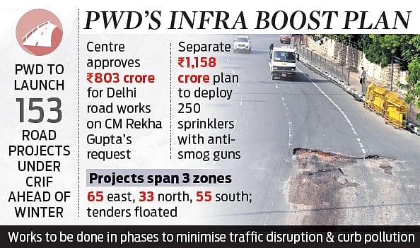 The CRIF allocation follows approval of `803 crore last month by the central government for Delhi’s road infrastructure needs, a grant sought by Chief Minister Rekha Gupta.