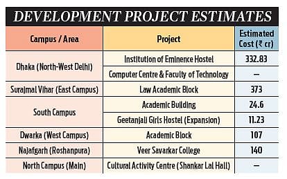 Among the most prominent developments is the Institution of Eminence Hostel at the Dhaka campus in North-West Delhi. Built at a cost of Rs 332.83 crore, the nine-storey, gender-inclusive residential complex will accommodate 1,436 students. The campus will also soon see the completion of the Computer Centre and the Faculty of Technology buildings, both in their final stages of construction.