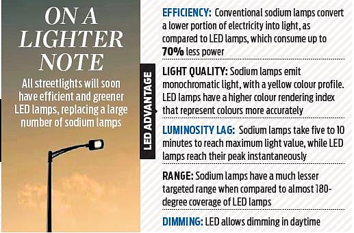 According to the officials, while some roads have LED lights, a large number of old HSPV (sodium) streetlights need to be replaced.