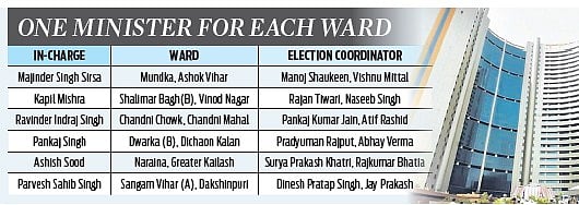 Under the directions of Delhi BJP president Virendra Sachdeva, district presidents held meetings with mandal office-bearers and senior workers from respective wards to plan election strategies. Sachdeva on Wednesday appointed election coordinators and nominated one minister in charge for each of the 12 wards.
