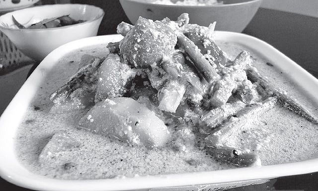 This dish is a star in its own right. Mochar Ghonto or Banana blossom curry. Flowers of banana tree are cleaned, boiled, mashed and cooked in various spices.