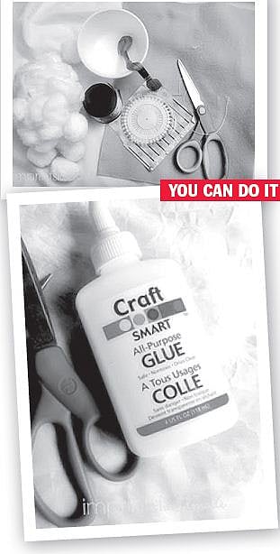 Cotton balls or cotton batting Styrofoam or thermocol food container or cup Felt sheet (one or two depending on your choice of colour - I ended up using a whole sheet of mustard yellow and a strip of deep red) Saree border (one and half inches width) to embellish Some thread, the embroidery variety and needle A pair of scissors Some pins to stick on the cushion when it gets done Embellishments such as stickers are optional Sand paper Craft glue