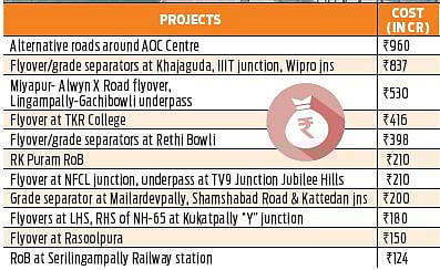 The Greater Hyderabad Municipal Corporation (GHMC) has proposed 38 projects in seven packages amounting to Rs 7,032 crore, slate to complete in 2025. These include multi-level flyovers/grade separators, underpasses, development of junctions and road widening.