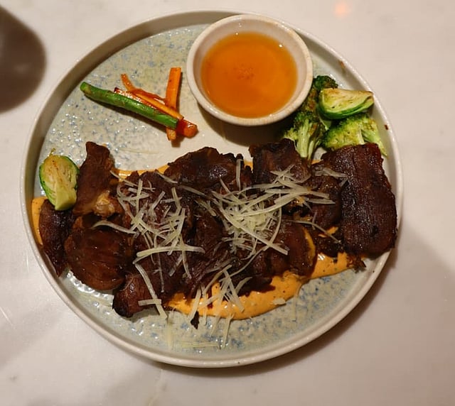 Ask him for his personal favourites, and he doesn’t hesitate. “The lamb brisket is something I really love — brisket is usually made with beef, but since we don’t serve beef, we crafted it with lamb. And the pistachio cheesecake made by my chef — that’s a must-try.”