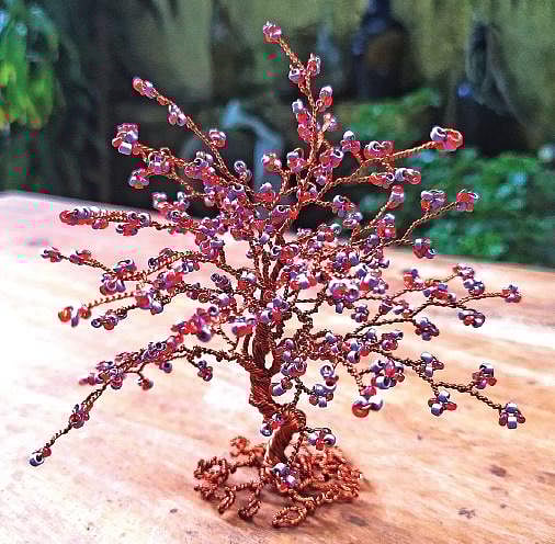 Veena was inspired to experiment with wire after she saw the picture of an art work made with wire on Pinterest. “I first attempted a tree. The beads are glued onto the wire which is reshaped to make it look like a tree.