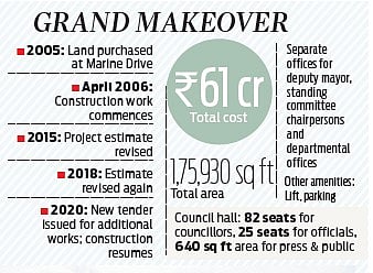 “In 2005, then mayor C M Dinesh Mani took the initiative to purchase the land required for the office at Marine Drive from the state government. Based on the design by architect Kuldeep Singh, a tender was issued and construction began.