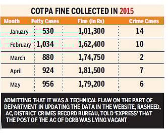 Admitting that it was a technical flaw on the part of department in updating the data in the website, Rasheed, Assistant Commissioner (AC) of Police, District Crimes Record Bureau (DCRB), told ‘Express’ that the post of the AC of DCRB was lying vacant for quite some time. “As the former official was on leave, the work on entering data online came to a standstill. However, the problems will be rectified within two to three days following the instruction from the City Police Commissioner,” he said. The City Express report had said that the fine amount collected was found to be ‘Nil’ in the website and, hence, the detection and registration of cases were found to be too low when compared to other districts both in 2015 and 2014.
