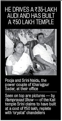 There is always a ‘minder’ around Pooja Naidu, councillor of Ward 18 in Kharagpur Sadar. This muscled hanger-on seems to have been appointed by her husband, Srini Naidu, to check her answers and remind the interviewer who is in charge.
