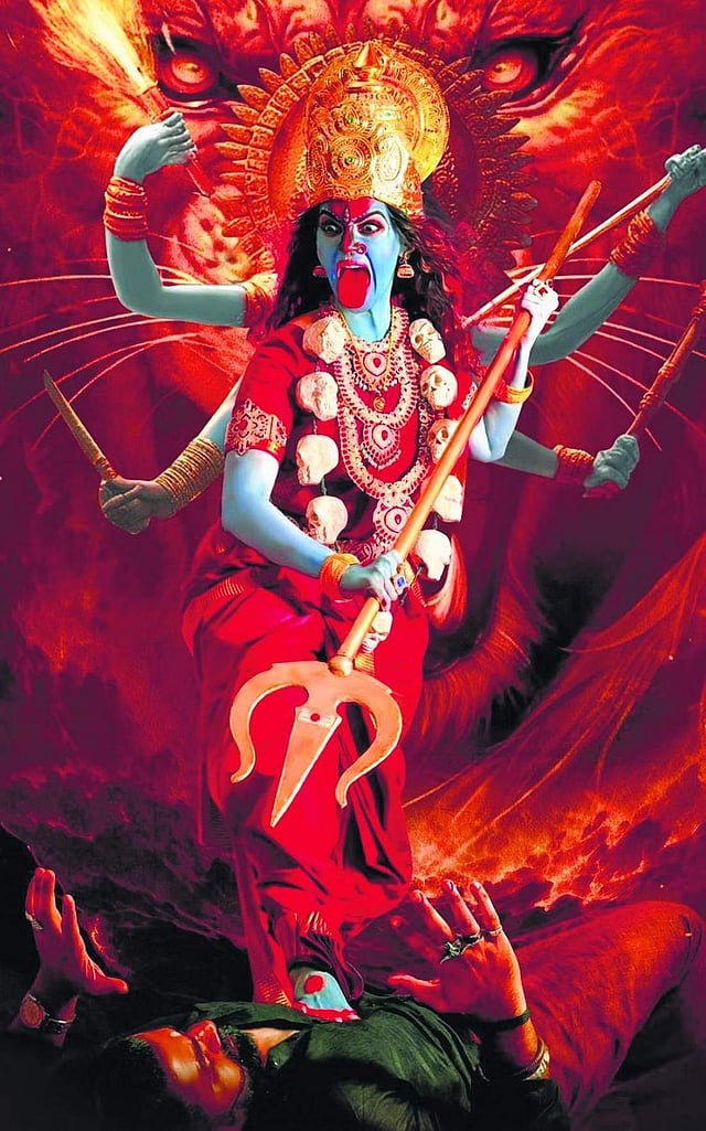 While some of these looks depict the actor in a goddess avatar, released on the occasion of Dasara, one look showcases her as a domestic helper, holding a broom in one hand and a knife in the other.