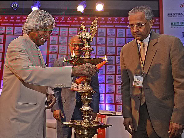Dr APJ Abdul Kalam lights a lamp inaugurating the ThinkEdu Conclave organised by The New Indian Express in Chennai on February 7 2013. Looking on are Mr Manoj Kumar Sonthalia, Chairman of TNIE Group and Mr Prabhu Chawla, Editorial Director, TNIE. For full Coverage click here