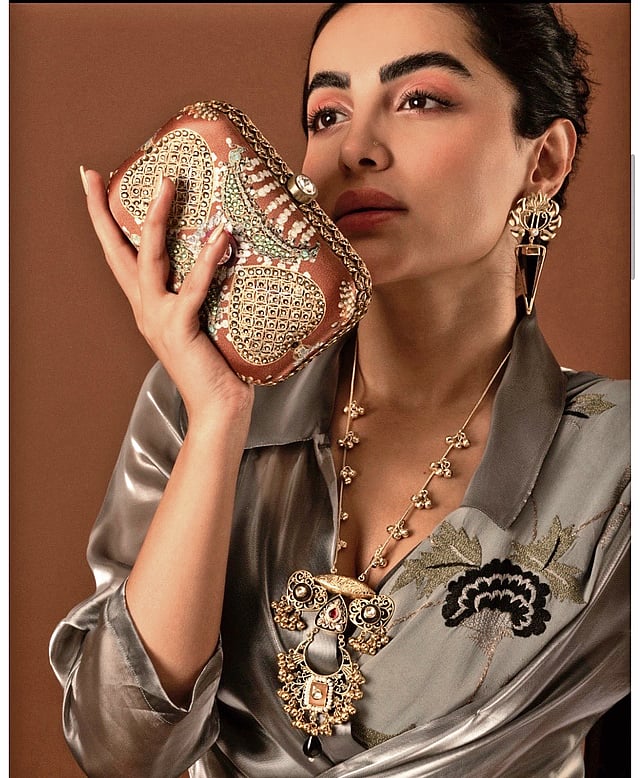 The collection unfolds in two radiant chapters. The first, a nod to European aristocracy, channels treasures once tucked away in palace vaults—intricate custom prints, jewelled detailing, and embroidery that feels almost sculptural. “You might see a jewel bag with repoussé work featuring a European motif, paired with embellishments that are very Indian in their spirit,” Gupta shares. “It’s a dialogue between two eras and two aesthetics.”