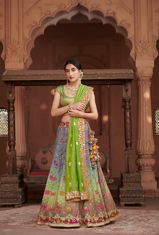 wide range of embroideries such as French knots and petite point. "Beyond embroidery, I have also been fascinated by the art of weaving. Seeing fabric creation as a canvas of unlimited possibilities, we embraced several handloom crafts under our wing, including Banarasi, Paithani, Patola, Pochampally Ikat, Kanjivaram, and Jamdani, to name a few. Techniques like Kalamkari, Bandhani, and Ajrakh were also explored," says Gautam.