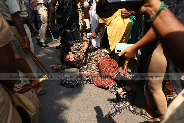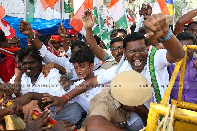 Leaders and cadres of the Congress, the DMK and other parties of INDIA block staged a demo at the Pattanikadi junction to demand a stringent punishment for the accused.