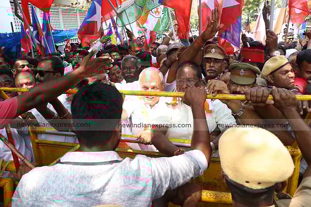 PCC President and Lok Sabha member V Vaithilingam, former Chief Minister V Narayanasamy, Leader of Opposition in Puducherry Legislative Assembly R Siva, CPI State Secretary A M Saleem, CPM state Secretary R Rajangam, MLAs of Congress and DMK and a host of functionaries of the parties were arrested when they attempted to barge inside Raj Nivas forcibly.