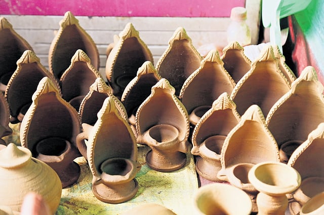 During Deepavali and Sankranti, the potters mould diyas, pots, flower vases, and tiny money banks, travelling to nearby villages to exchange their handmade wares for rice, crops or whatever people can offer.