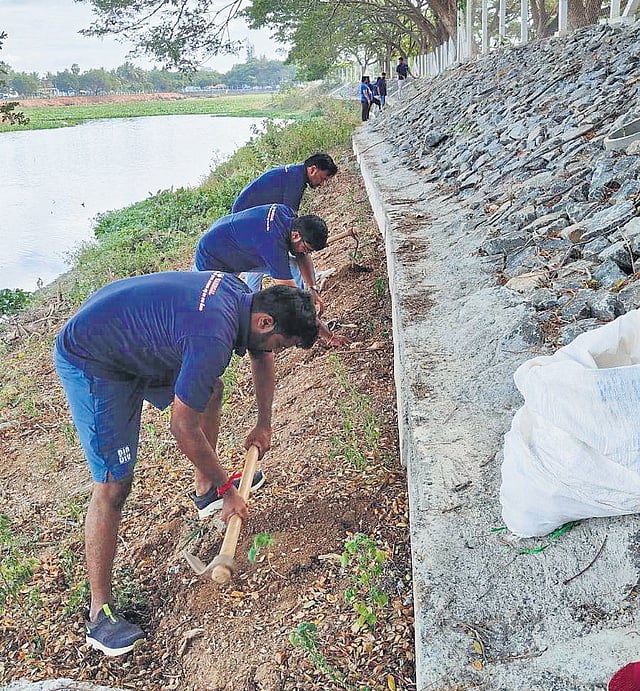 “Initially, we engaged ourselves in small tasks like planting saplings. In 2012, I graduated from college and joined an IT company in Chennai, but continued the NGO works on weekends. Due to lack of job satisfaction, I left my job in 2015 and came back to Tiruppur. That’s when I realised the poor state of Moolikulam, a pond in my area, and decided to reclaim it through Veargal,” said TR Sandeep (34), one of the founders and coordinators of the organisation.