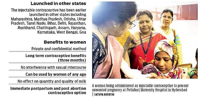 On the occasion, Hyderabad District Medical & Health Officer (DMHO) Dr Padmaja said that the contraceptive was highly effective, convenient, tested and tried as an extremely safe method of family planning in India.The contraceptive will be available up to the sub-centre level in the second phase. It will help women who are not able to convince their partners to use other contraceptives methods. The availability of the injections may help reduce the spacing percentage.