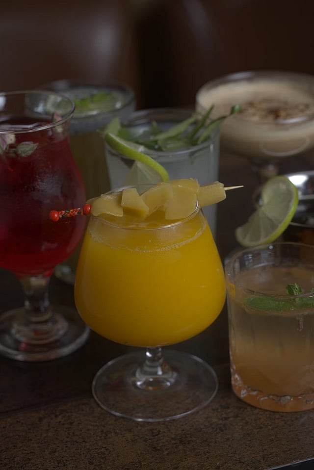 The drinks menu is quite inventive, with cocktails like ‘Leaf Me Wet’ (with curry leaf), ‘Amma’s Wild Side’ (mango, green chilli, roasted jeera, and tequila), ‘Lassi Me Harder’ (mango lassi and vodka), ‘Kama Rasam’ (rasam with rum), ‘Filter Me Dirty’ (tequila, filter coffee, and milk cream), and ‘Pulli Out Game’ (tamarind syrup and bourbon). Among mocktails, ‘Soda Sharamth’ — made with nannari sarbath, green lemon, and soda — is a favourite.