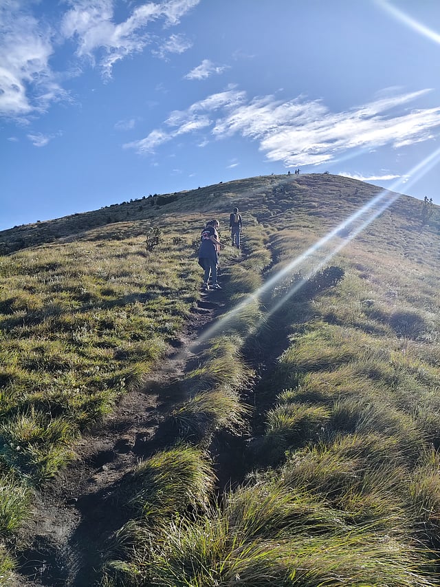 This was only the first hill. Six more lay ahead. The trek, roughly 8km one way, wound through undulating meadows and grasslands. Some stretches were gentle, others steep and rocky.