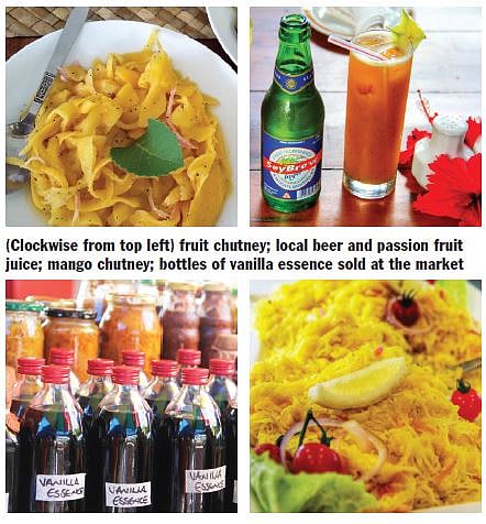 A good window into local produce is the colourful Sir Selwyn Clarke market in the centre of Victoria, the capital city. In the shade of a giant mango tree, the stalls burst with spices, fruit and vegetables, fish and seafood. I see stalls overflowing with exotic fruits like mango, pineapple, watermelon, cantaloupe, paw-paw, bitter oranges known as bigarades and carambole (star fruit). Fresh pods of vanilla, giant bundles of aromatic cinnamon and bottles of vanilla essence are sold by plump women in sundresses.