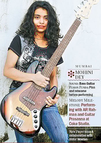 Spontaneity is the soul of fusion music. To quote John McLaughlin, Only in spontaneity can we be who we truly are. The bass guitar is musical spontaneity powerful vehicle. Today, it is bleeding into Carnatic and Hindustani music with stunning fluidity. Ganesh is not the only one romancing the sound of the bass guitar. Phenomenal performer Anuradha Pal will be deconstructing the rhythm elements of the tabla with Kerala-based bass-guitar player Jayen Varma. The young goddess of dexterity, Mumbai-based prodigious bass guitarist Mohini Dey is unravelling percussion on the bass guitar in her performance with drums and vocals. Dey has touched the musical zenith in her practice-driven craftsmanship. She has earned a collaboration with the five-time Grammy award winner, composer and bass guitarist Victor Wooten. a dream come true, she says over the phone from Mumbai. After the success of the Internet musical initiative Shrutibox, where the sound-superpower, American clarinettist Shankar Tucker made his debut as a composer, featuring his works on the YouTube, his new venture that features the best musicians from the Indian music scene. I had the classical music all boxed in. I wanted to experiment with all the sounds possible, says Tucker.