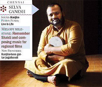 Selva Ganesh, to paraphrase Mick Jagger, can get no satisfaction. The Chennai-based world-renowned musician has conquered musical territories divided by traditions, styles, harmonies, scales, lineages and genres with his kanjira;the percussion instrument without scalesfor more than 15 years. Ganesh now wants to explore the contours of rhythm and melody in fusion music with the kanjira and bass guitar. Sitting on the crater of his unbridled creativity in a decade marked with landmark concerts, music direction for regional films, jams and studio recordings, including the recently released Cheetu, a folksy track for India grand old fusion-rock band Indian Ocean collaborative album Tandanu, Ganesh is planning to go full-steam on kanjira-bass guitar jugalbandis for live concerts.
