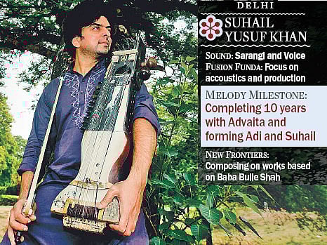 With every touch of the roughened back of Khan’s fingers on the sarangi’s rugged strings, Advaita got a new thinking note and more harmonies. The ragas are not simply “sung” and “played” in Advaita’s repertoire. They are used as the wind for a melodic flight. Khan adds, “There was a different dimension in the ragas waiting to be explored. Fortunately, independent music brought the culture of musicians’ own record labels. Producing and composing got a boost. This trend changed the way bands were thinking and performing fusion music. It was like a revolution waiting to happen.” Khan is currently exploring the works of Baba Bulle Shah in the band Adi and Suhail, where he performs with friend, guitarist and composer Aditya Balani.