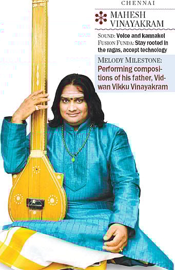Vinayakram, the storehouse of over a 100 kritis passed on to him by his gurus and father, recently performed with a Bulgarian Choir to explore the four-note approach of harmonies. Ableton, the music software saved on his laptop, is taking care of the rest.