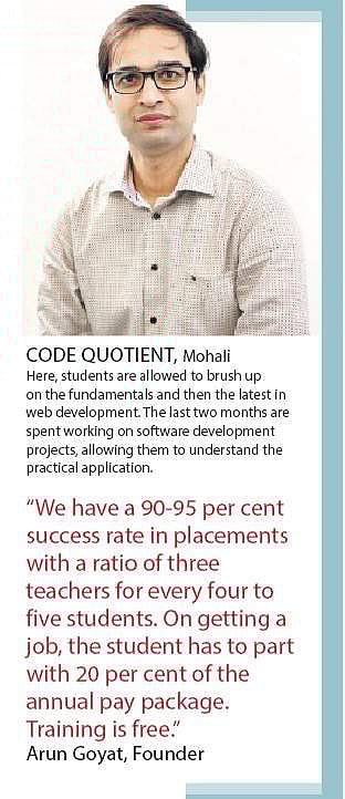 We helped him decide, and today he draws an annual salary of `8 lakh. Some students drop out as they cannot handle the pace, he adds. Come January, Goyat plans to start ‘Super Coder’ wherein 30-40 students from tier-2 and tier-3 colleges will be taught about the newest technologies free of cost. There are also plans to go online with a pilot project coming up in several colleges in Punjab, Haryana and Himachal Pradesh.