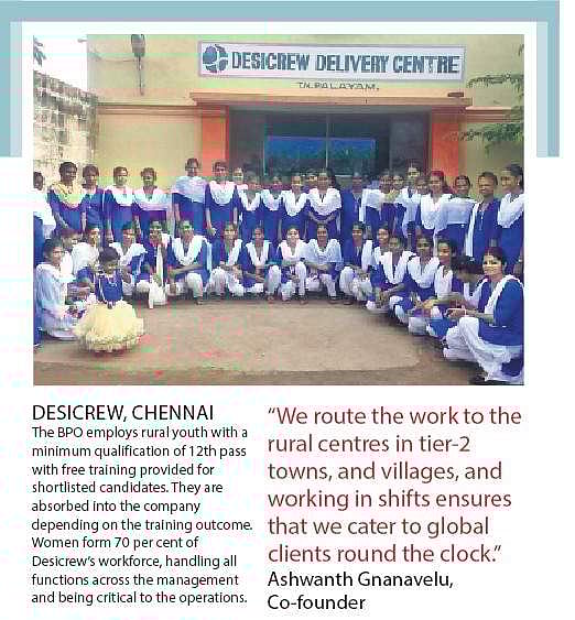 A BPO flourishing in the rural sector with women forming the mainstay of the organisation—that is not a pipe dream, rather it pans out as a lucrative business model with tremendous societal impact. That’s Desicrew, founded in 2007 with its base in Chennai and delivery centres in rural Tamil Nadu and Karnataka. Co-founder Ashwanth Gnanavelu says, “We route the work to the rural centres situated in tier-2 towns and villages, and working in shifts ensures that we cater to global clients round the clock.” Desicrew employs rural youth with a minimum qualification of 12th pass with free training provided for shortlisted candidates. They are absorbed into the company depending on the training outcome, shares Ashwanth. For most Process Transitions, ‘crewmates’ have been certified by the clients. “The rural team members even worked on a GIS activity, which involved plotting data on digital maps.
