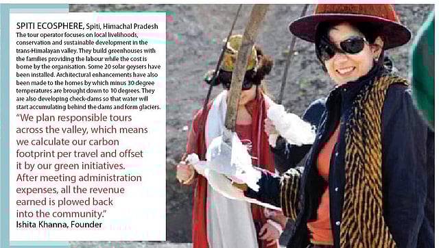 Spiti Ecosphere, a socially responsible tour operator, focuses on local livelihoods, conservation and sustainable development in the trans-Himalayan valley. Says founder Ishita Khanna, “We plan responsible tours across the valley which means we calculate our carbon footprint per travel and offset it by our green initiatives. After meeting administration expenses, all the revenue earned is plowed back into the community.”