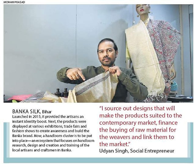 Similarly, Banka, a small town in Bihar, which once boasted a great weaving tradition and whose weavers had been reduced to penury, was put on the international map, thanks to the efforts of Udyan Singh, a civil engineer-turned-social entrepreneur. Says Singh: “Banka lost its sheen in the face of mounting debts faced by the artisans and hardly any government recognition. Each weaver would work with a middleman and the finished product would be sold as a one-off item without a distinctive trade identity to back it up.”