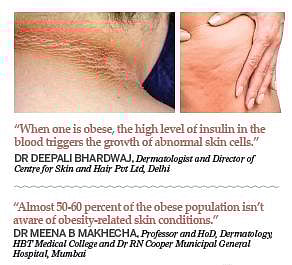 She could never fathom that the two were interconnected. But here’s a fact-check: “When one is obese, the high level of insulin in the blood triggers the growth of abnormal skin cells, which increase melanin in the body. The process causes darkness in the skin making it rough. It can lead to complications in the body, mainly indicating early sign of type-2 diabetes,” says Dr Deepali Bhardwaj, dermatologist and director of Centre for Skin and Hair Pvt Ltd, Delhi.