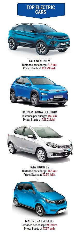 Cheapest is Strom Motors’s e-car costing between Rs 3-4.5 lakh. Tata Nexon EV’s tab is between Rs 13.99-16.39 lakh. Tata Tigor EV is priced between Rs 9.58-9.9 lakh; MG ZS EV between Rs 20.99-24.18 lakh; and Mahindra E Verito between Rs 10.15-10.49 lakh—these are the on-road prices in Delhi. Joining the electric car race soon is BMW i3, Mahindra XUV300 Electric, and Tesla Model 3. The Society of Manufacturers of Electric Vehicles notes a 20 percent increase in EV domestic sales as compared to the previous year. Change is in the driving seat.