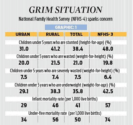 A look at the last round of National Family Health Survey (NFHS) in 2015-2016 corroborates this as it shows that the country’s showing on parameters of ‘wasted’ and ‘severely wasted’ children had worsened compared to the previous survey in 2005-06.