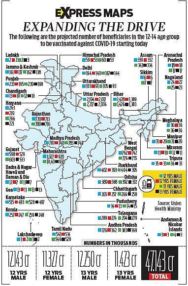 NEW DELHI: An estimated 4.71 crore children in the age group of 12-14 will be vaccinated against Covid-19 from Wednesday, while 13.75 crore persons above 60 will become eligible for booster shots, the government said on Tuesday.