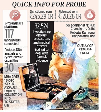 As part of its effort to further expedite forensic analysis and reduce backlogs in laboratories, the MHA has set up three new Central Forensic Sciences Laboratories (CFSLs) at Bhopal, Guwahati and Pune and upgraded the existing CFSL at Kolkata with latest state-of-art machinery and equipment.