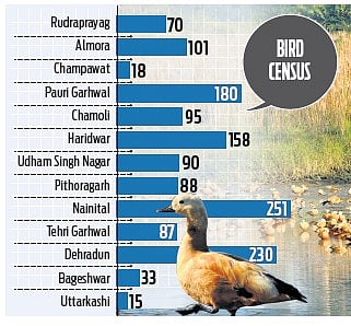 The two-day bird census, organised by the e-Bird organization in collaboration with the forest department and various other groups in Uttarakhand, concluded on Sunday.