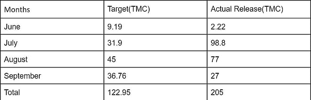In its 105th meeting, the CWRC assessed that Karnataka released around 205 thousand million cubic feet (TMC) of water flows at the interstate point of Biligundlu between June and September 2024, exceeding the required total for the entire monsoon season of 123 TMC (see table).