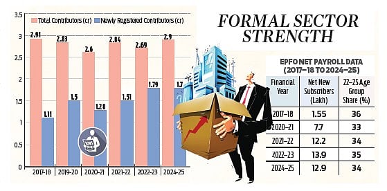 NEW DELHI: India’s formal employment ecosystem appears to be regaining strength despite global economic headwinds, as new data from the Employees’ State Insurance Corporation (ESIC) and the Employees’ Provident Fund Organisation (EPFO) show steady payroll expansion powered mostly by younger workers.