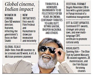 This year’s edition will introduce two new initiatives—the first Artificial Intelligence (AI) Film Festival and a Hackathon—aimed at exploring the growing link between cinema and technology. Superstar Rajinikanth will be felicitated at the closing ceremony for completing 50 years in cinema.