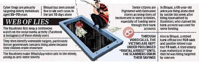 In Indore, police say the targeting is systematic. Additional DCP (Crime) Rajesh Dandotiya said, “These gangs work in multi layers, one of those layers comprises men and women, who scan the social media activity of senior citizens. The fraudsters zero in on the victims and put them under a digital arrest.”